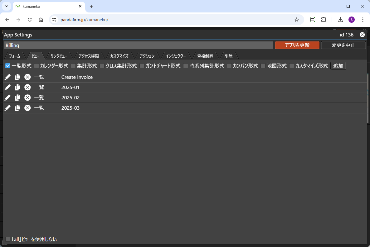 一覧形式のビューの作成