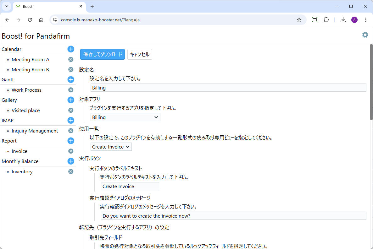 取引先マスタを基に、指定した期間のデータを他のアプリから取得し、帳票レコードを生成するプラグインです。